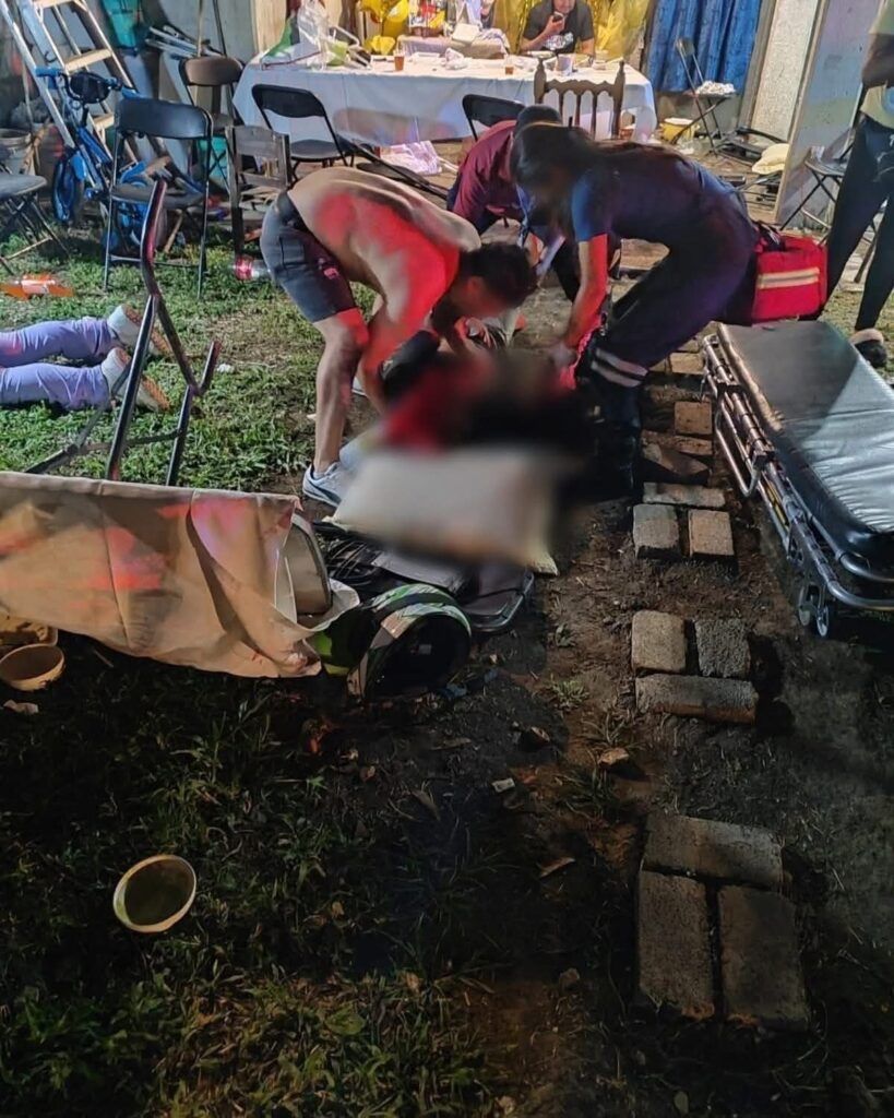 Una mujer falleció en el patio y tres personas más resultaron heridas y fueron llevados a un hospital, pero en el trayecto uno de ellos murió.