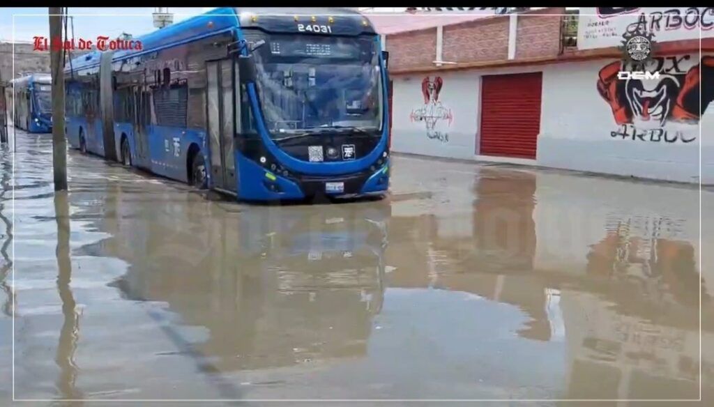 El servicio del Trolebús, que acaba de inaugurarse, no suspendió el servicio, pero fue lento porque la ruta alterna por la que pasan las unidades articuladas, también sufrió afectaciones por la lluvia.