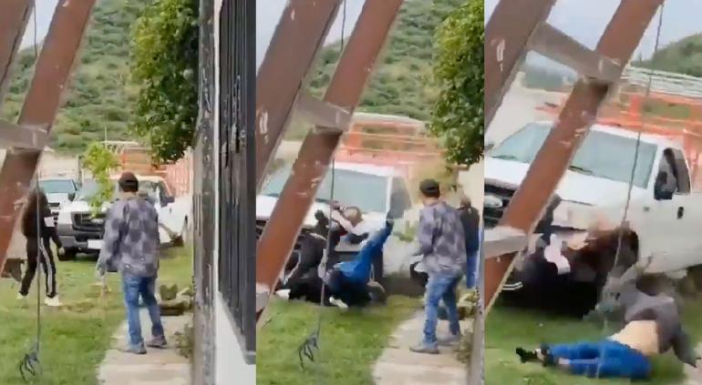 El incidente fue captado en video por un testigo que se encontraba en el lugar, y rápidamente se viralizó en plataformas digitales. De acuerdo con la publicación que difundió el material, el conductor de una camioneta embistió deliberadamente a las víctimas durante una acalorada confrontación relacionada con la disputa de una propiedad.
