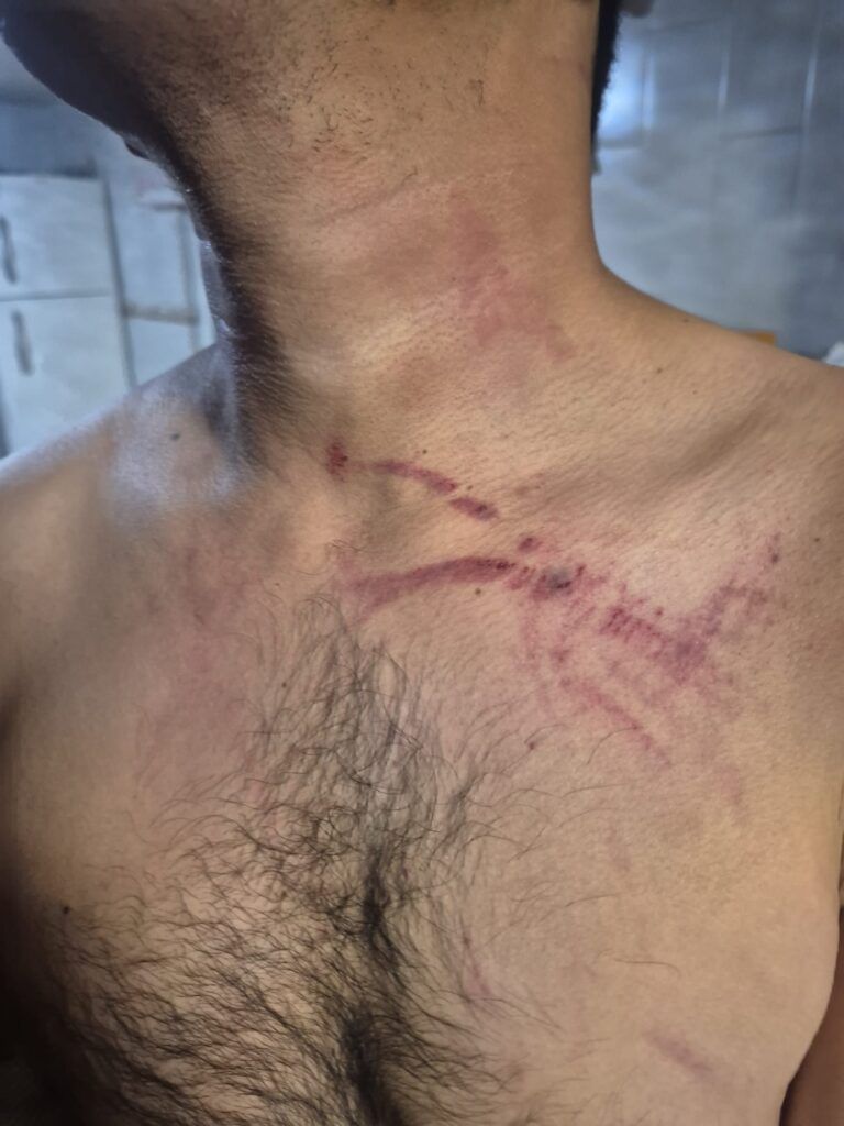 Tras ser golpeado en el pecho y la cabeza, Eduardo indicó que le bajaron su pantalón y lo golpearon con una tabla en sus muslos, en dos ocasiones.
