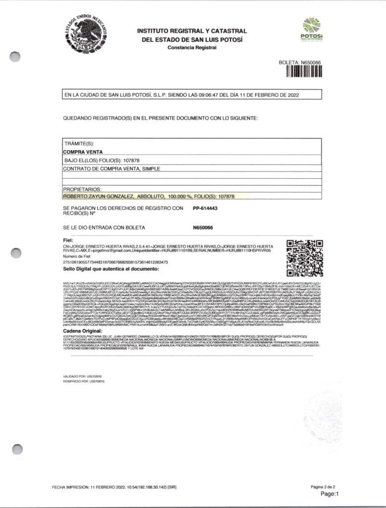 La revisión documental, encontró que Roberto Zayún cuenta con tres propiedades en San Luis Potosí, adquiridas de contado en los años 1987, 2018 y 2024 por un valor declarado e más de once millones de pesos, cuando su hermano Arturo aún no era líder del sindicato.