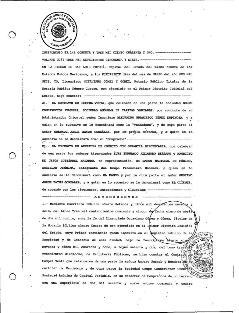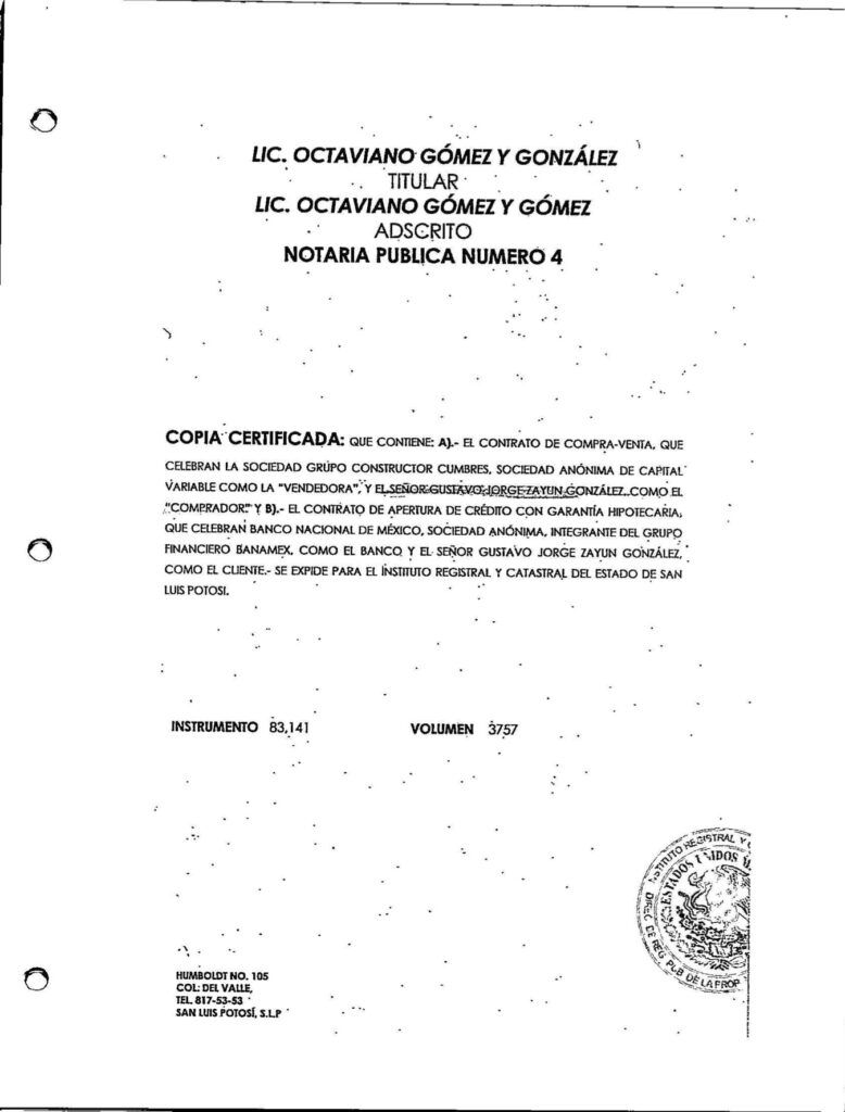 Otra propiedad encontrada en la segunda investigación, fue adquirida por Arturo Zayún el 29 de enero del 2021 en Villa Magna de San Luis Potosí; se trató de 160 metros cuadrados por un monto declarado de 896 mil 800 pesos pagados con transferencia y cheques de Scotiabank con número 1605032180 por 40 mil pesos y Scotiabank por 856 mil 800 pesos.
