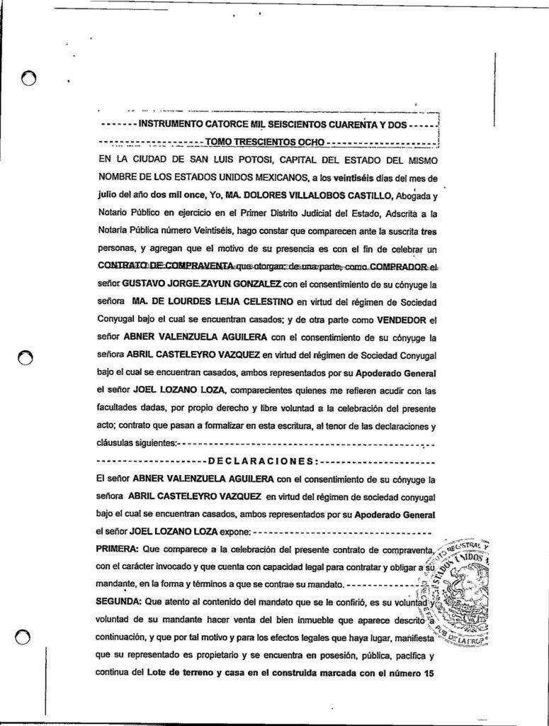 Para ello, realizó tres pagos de contado por 113 mil, 12 mil y 90 mil pesos ante las Notarías Públicas números 5 del licenciado Agustín Castillo Toro y 11 de Bernardo González Courtade.