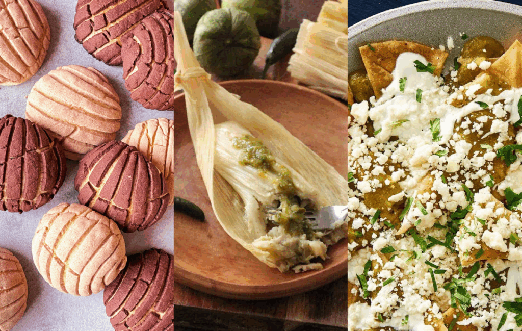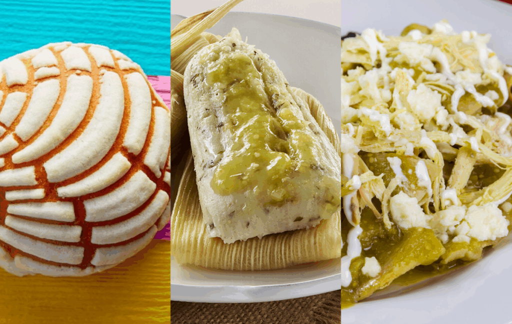 Imagina una concha, suave y dulce, partida por la mitad. Dentro se acomoda un tamal verde relleno de queso manchego. Y como si eso no fuera suficiente, este tamal se cubre con una generosa porción de chilaquiles verdes con pollo, queso rallado, crema y cebolla. Todo cuidadosamente envuelto para que lo disfrutes al paso, entre suspiros y culpabilidad.