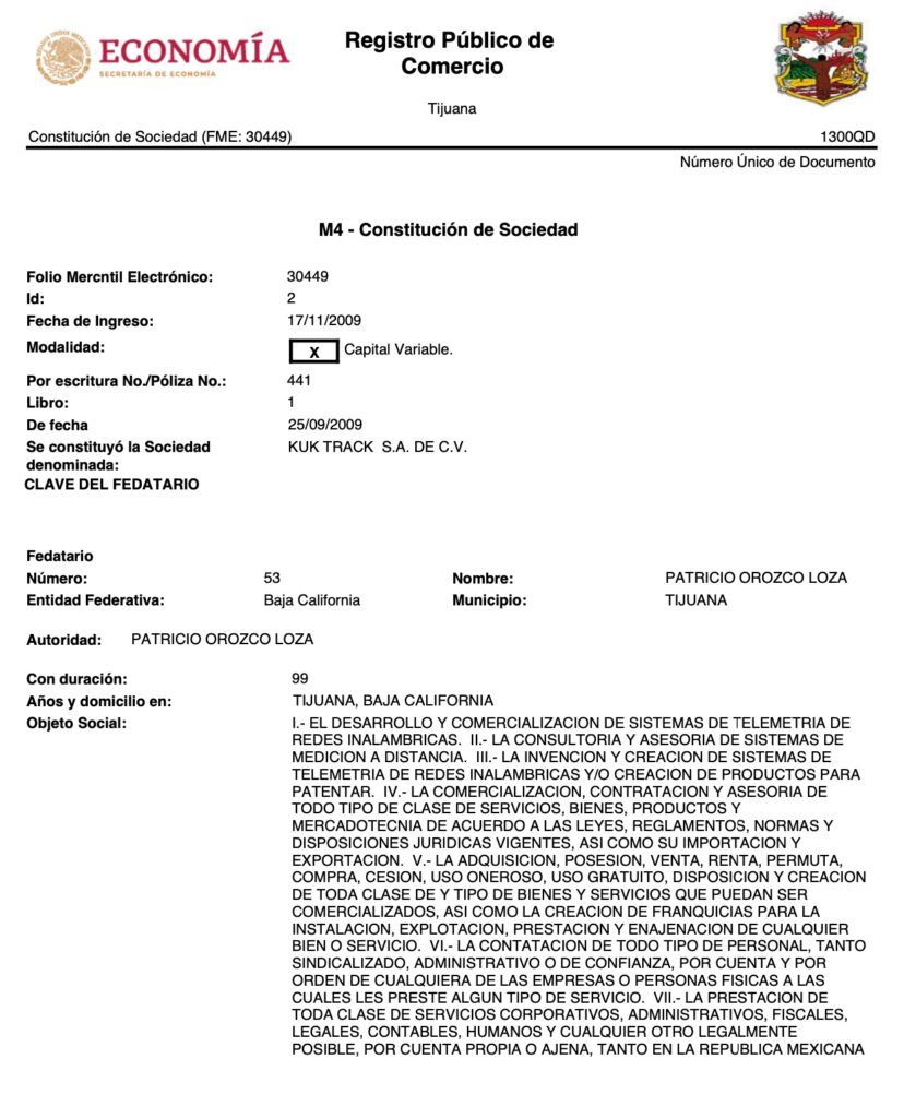 De acuerdo al Registro Público de Comercio, José Galicot Behar, Jorge Arturo Rojas Navarro y Antonio Martorrell Muñoz, son dueños de la empresa Kuk Track S.A. de C.V. desde septiembre del 2019.