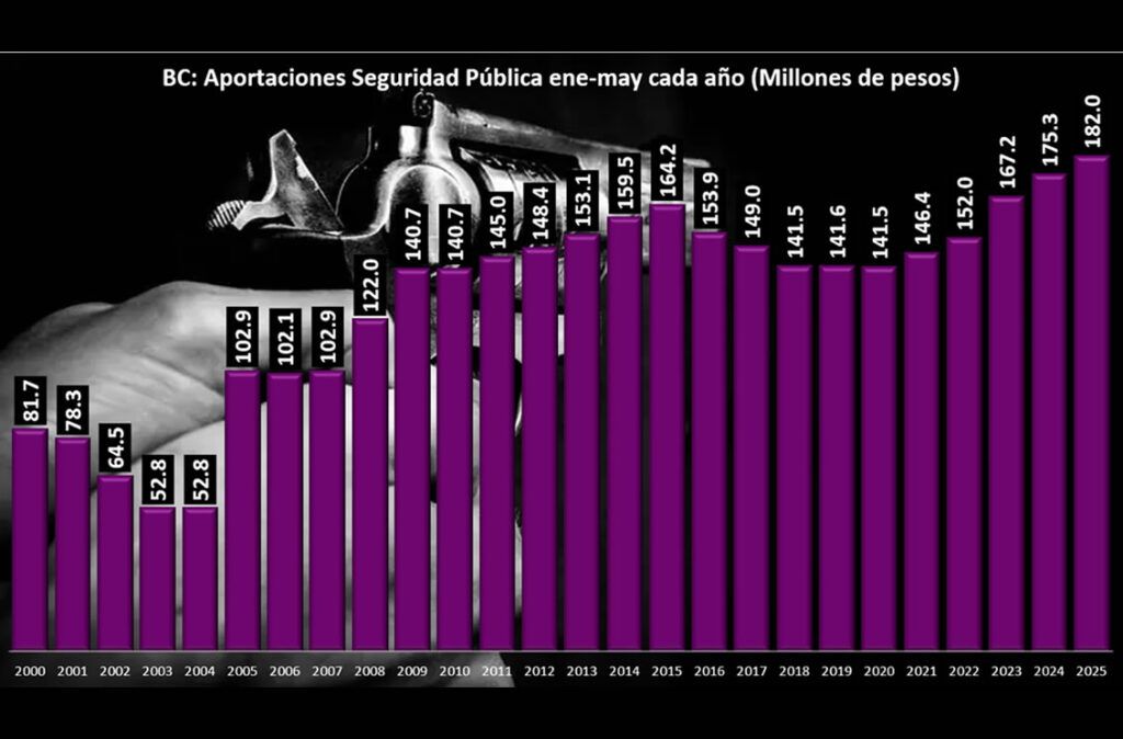 TIJUANA BC 1 DE AGOSTO DE 2025.- La Secretaría de Hacienda y Crédito Público (SHCP) aplicó un recorte marginal del 0.1% real a tasa anual en el Fondo de Aportaciones de Seguridad Pública (FASP) destinados al gobierno del Estado de Baja California en el acumulado enero-mayo de 2025.