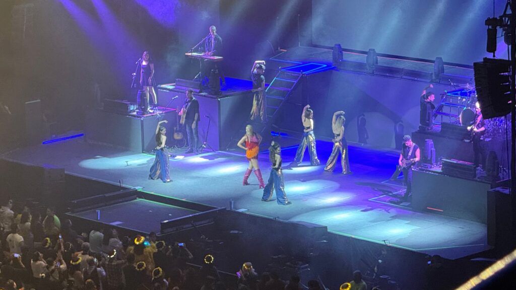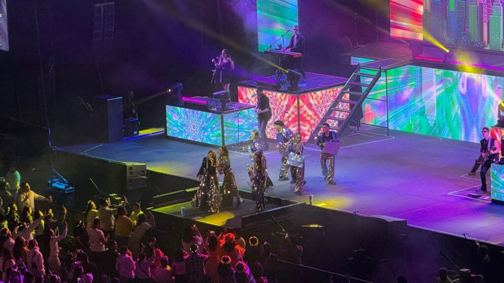 A lo largo de la presentación, la cantante mantuvo una conexión constante con el público, compartiendo anécdotas, agradecimientos y momentos emotivos que hicieron sentir a los asistentes como parte de una gran familia. La energía creció con cada canción, especialmente con temas como “Te Siento” y “A Bailar”, que hicieron que la Arena se llenara de baile, luces y alegría.