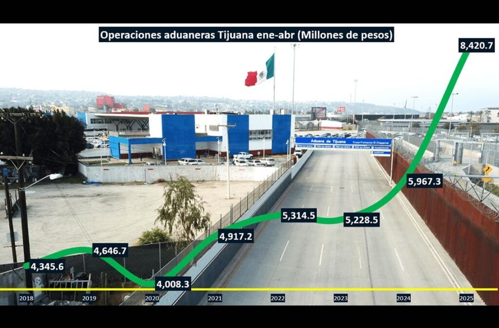 Los datos del ANAM para Tijuana documentan que es la mayor recaudación por operaciones aduaneras desde que se tiene información disponible para un periodo de enero a abril de cada año.