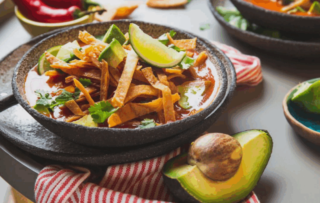 Más que una receta, la sopa azteca es un abrazo en forma de plato. Su sabor combina la suavidad del aguacate, la textura crujiente de las tortillas y la calidez del caldo especiado, convirtiéndola en un clásico que nunca falla.